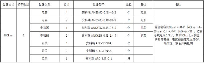 根據(jù)圖紙選擇合適的配置方案:200kvar=40kvar *4 + 20kvar *2,電抗率7%。