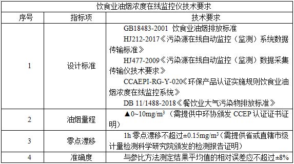 ● 符合HJ212-2017《污染物在線監控(監測)系統數據傳輸標準》、HJ477-2009《污染源自動在線監控(監測)數據采集傳輸儀要求》、GB18483-2001 《飲食業油煙排放標準(試行)》、CCAEPI-RG-Y-020《環保產品認證實施規則飲食業油煙濃度在線監控系統》