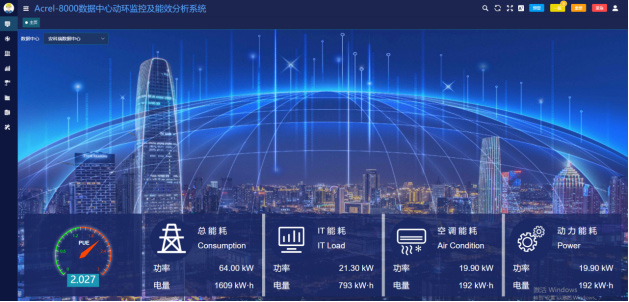 6.3.1 主頁查看:主頁展示當前數據中心PUE值,總能耗,IT能耗,空調能耗,及其他能耗。